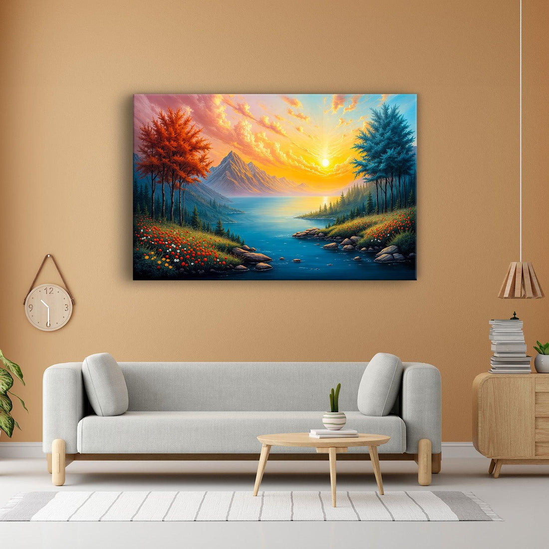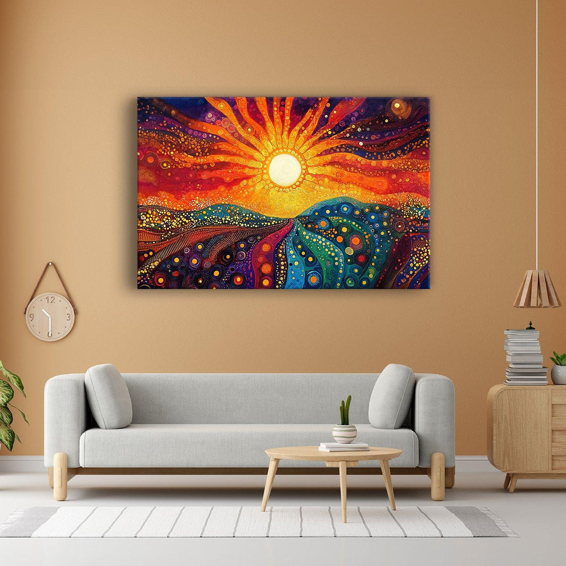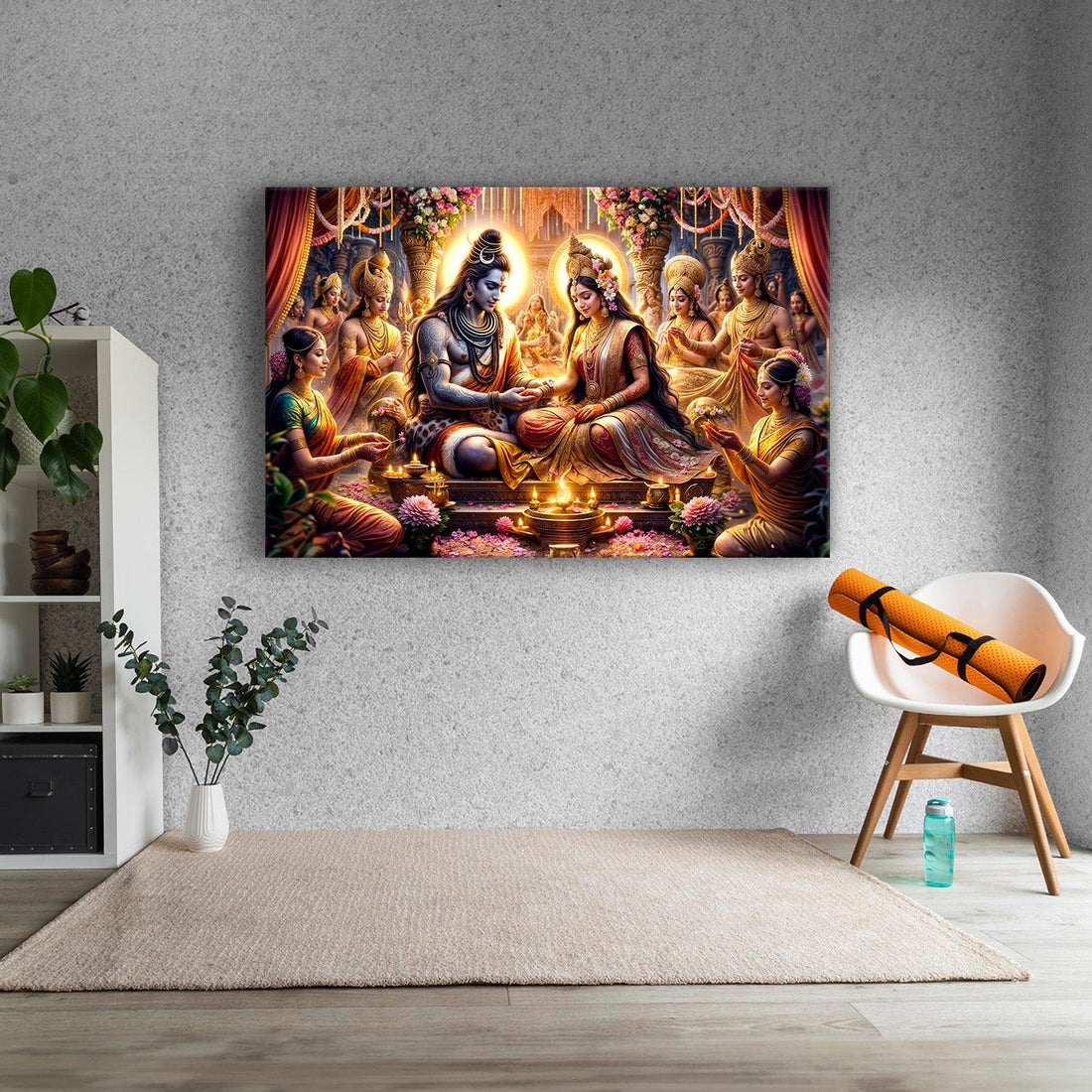 Canvas paintings suit anyone who wants the warmth and authenticity of real art on their wall. They blend beautifully into living rooms, bedrooms, cafés, temples or offices — adding colour without glare.