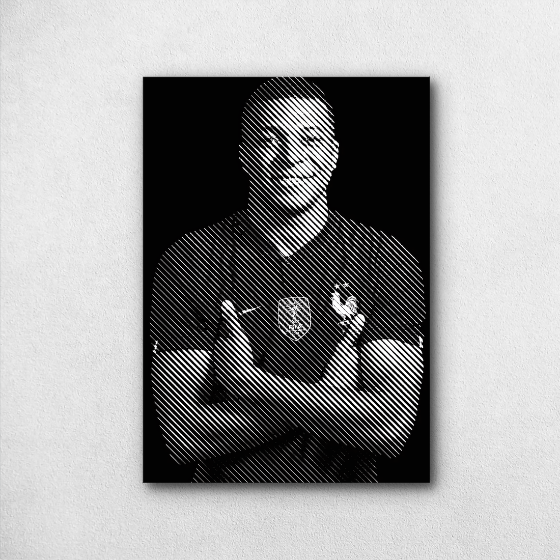 Kylian Mbappé Line Art Poster – Black & White Halftone Elegance