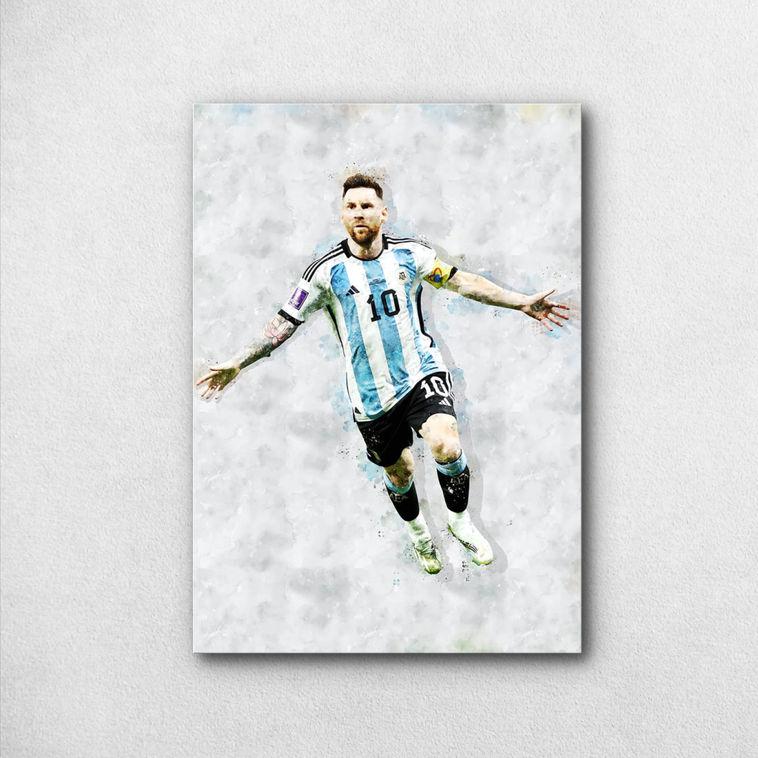 Lionel Messi Watercolor Celebration Poster – Argentina’s No.10 | Premium Print