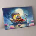 Radha Krishna Canvas Painting – Swan Boat under Full Moon