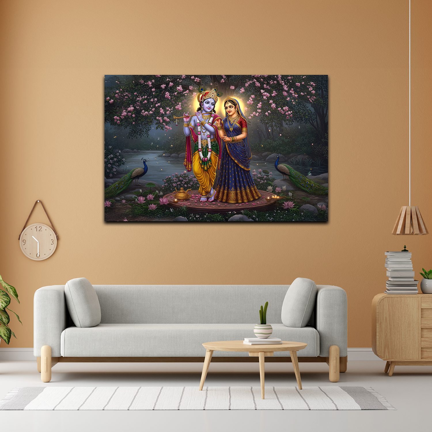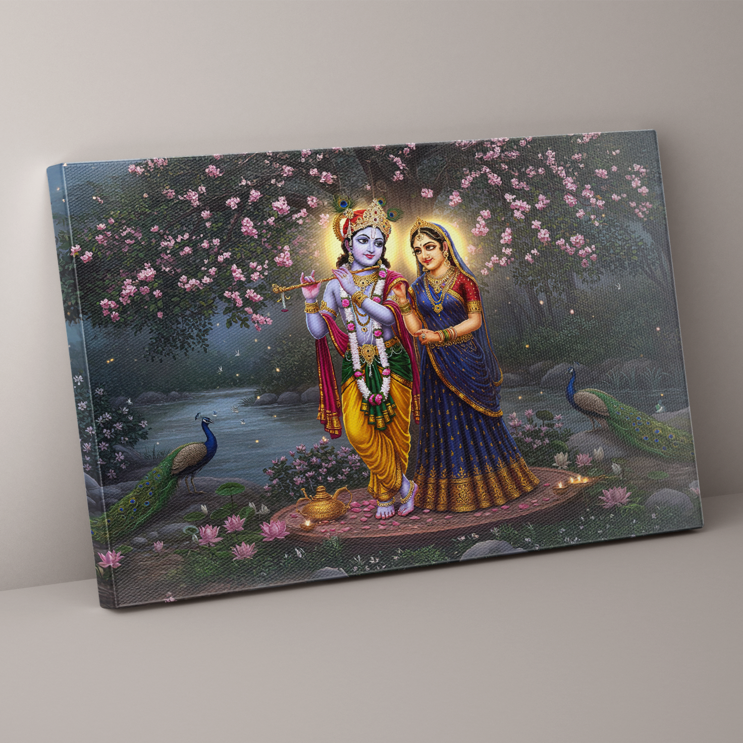🌸 Radha Krishna Vrindavan Melody Canvas Painting – The Symphony of Eternal Love