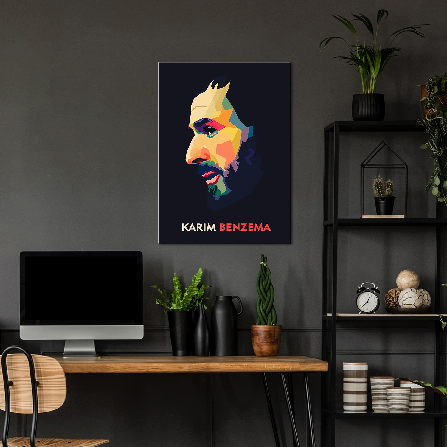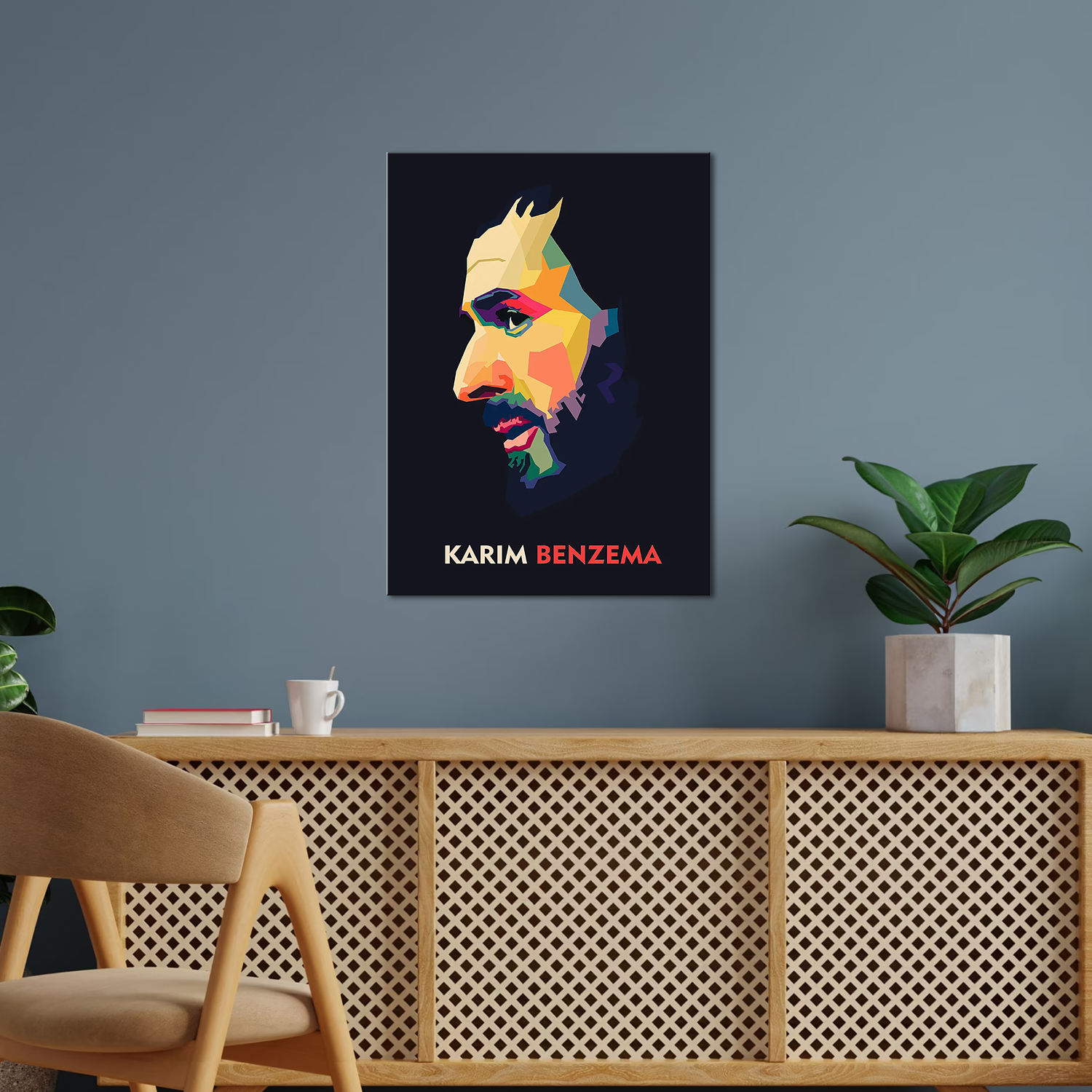 This abstract WPAP-style side profile captures the focus of Benzema like a visual poem — loud in color, silent in expression. The colors pop like thoughts in motion, and the shadows speak of legacy, struggle, and silence behind the storm.