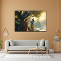 The Divine Melody of Vrindavan – Radha Krishna Canvas Painting | 300 GSM UV-Printed Artistic Canvas