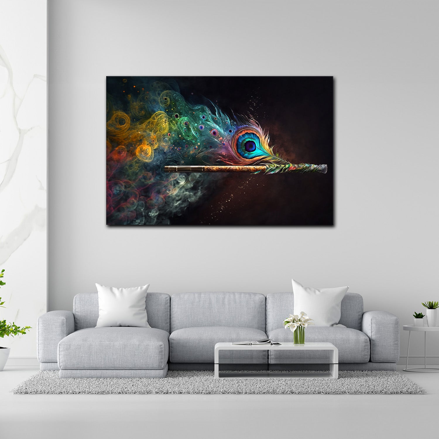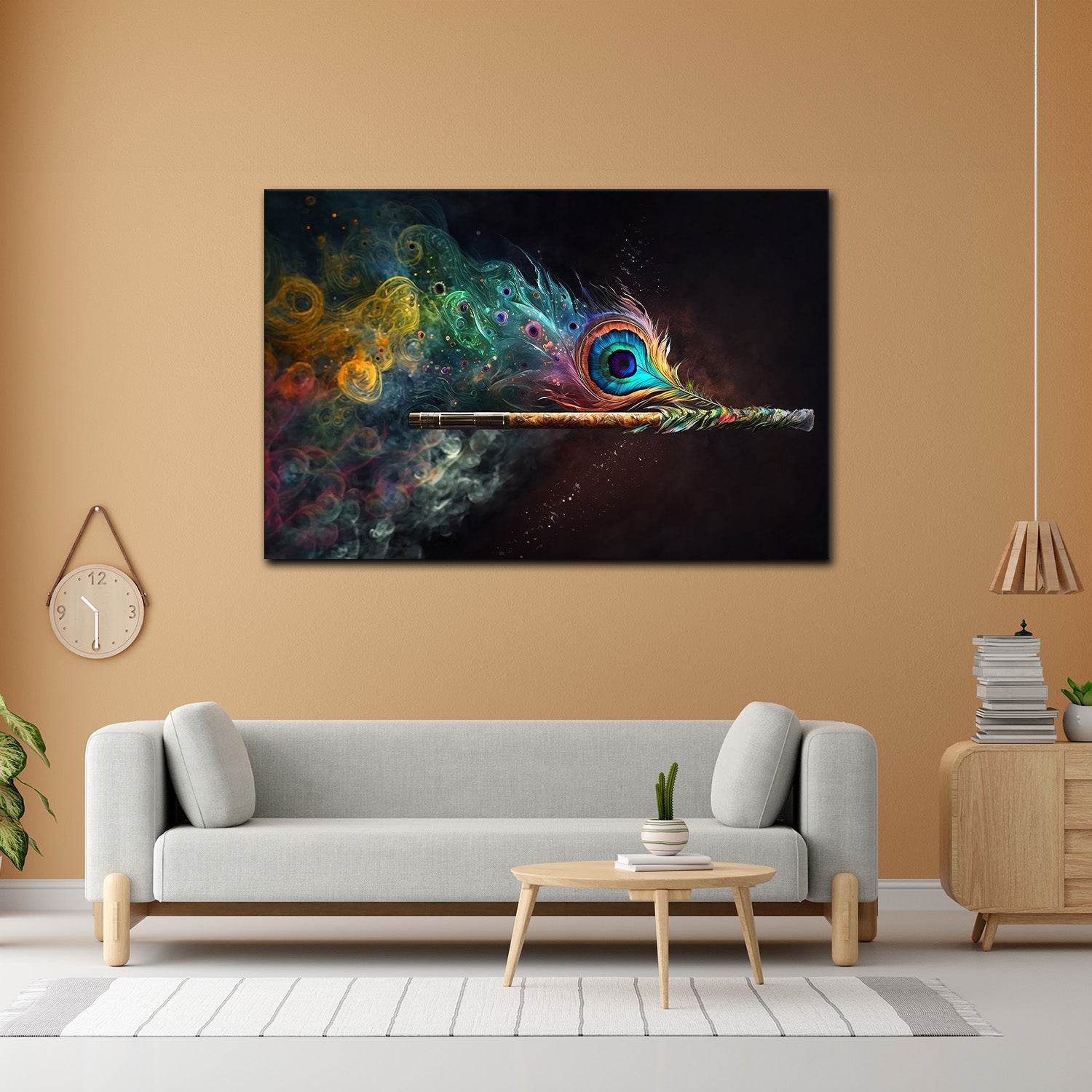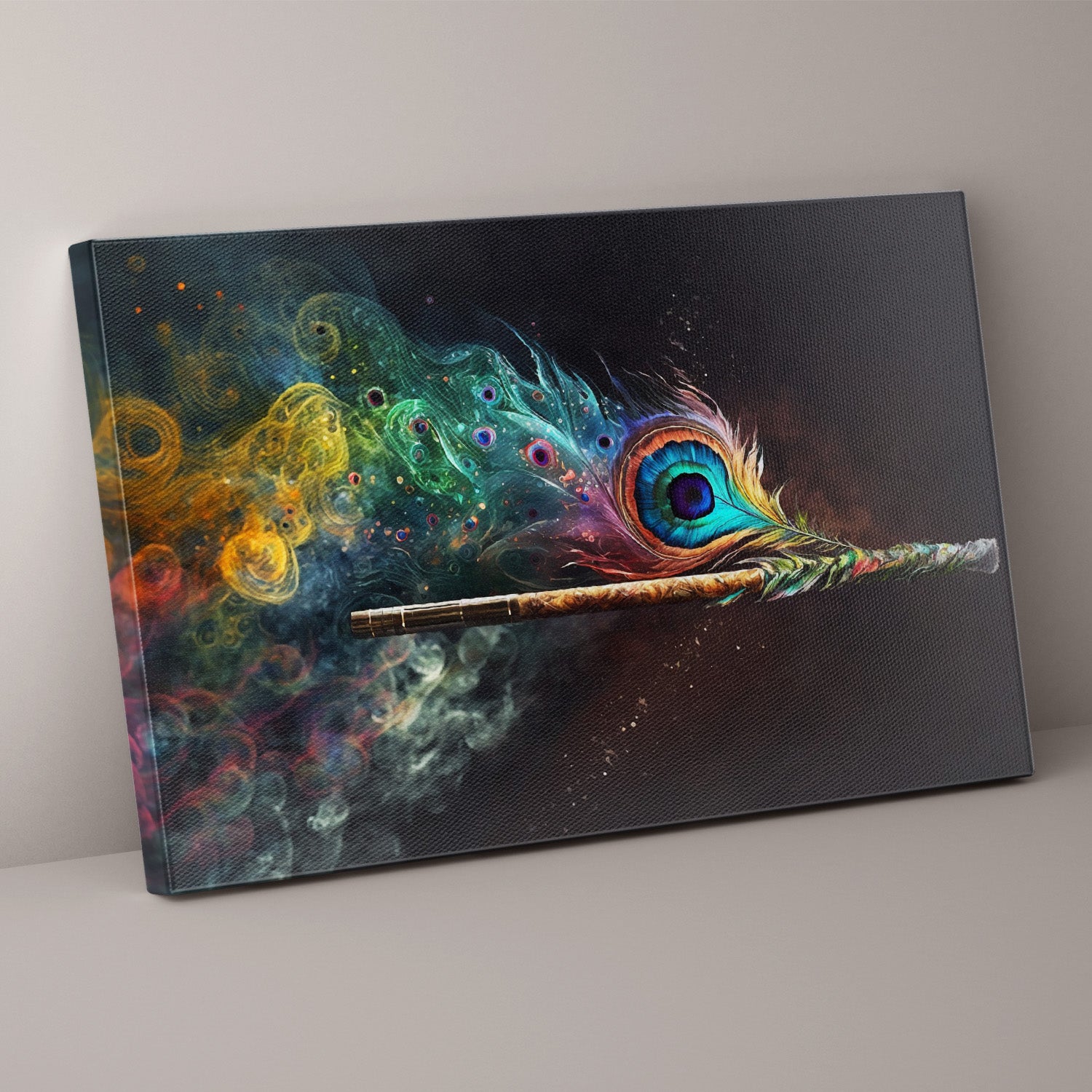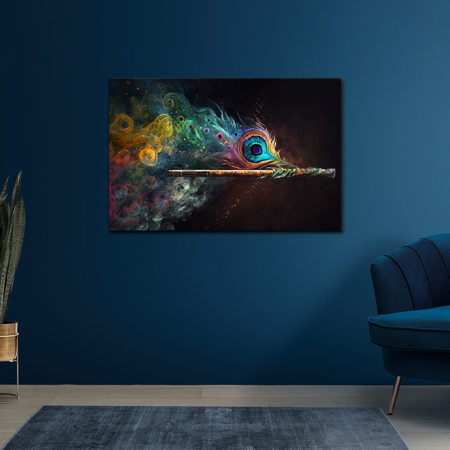 Krishna Flute & Peacock Feather Canvas Painting – Symphony of Divine Sound and Color