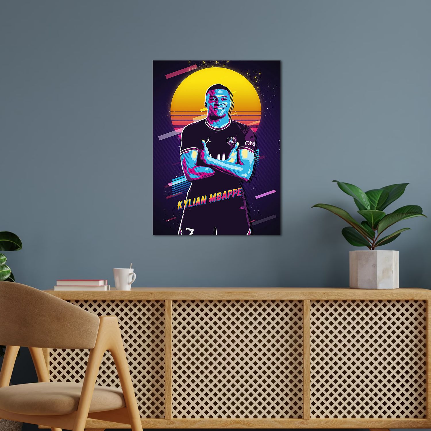 Kylian Mbappe Retro Poster PSG No. 7 | Synthwave Neon Art Poster
