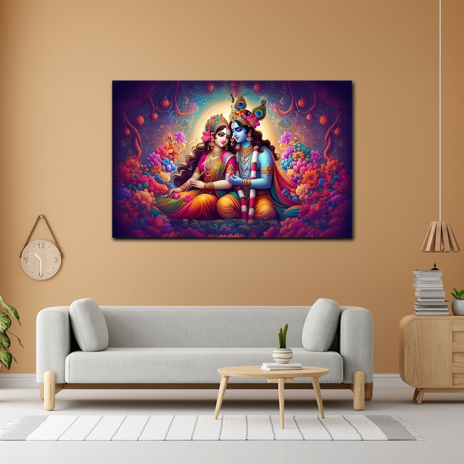 Radha Krishna Divine Love Canvas Painting – A Symphony of Color, Light & Devotion